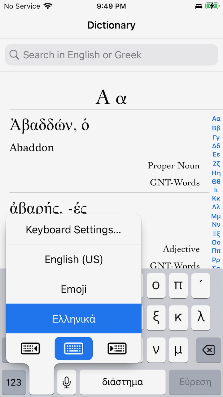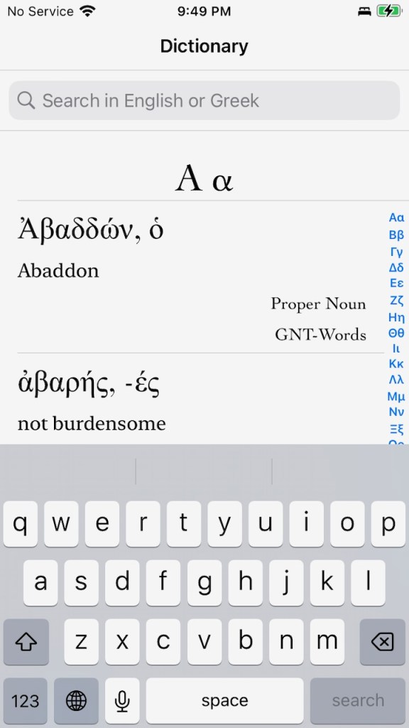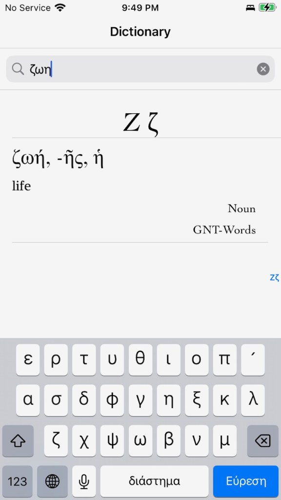 The example app here is my Pocket Greek Dictionary app, where you can search for Greek words to look up in the Ancient Greek dictionary!